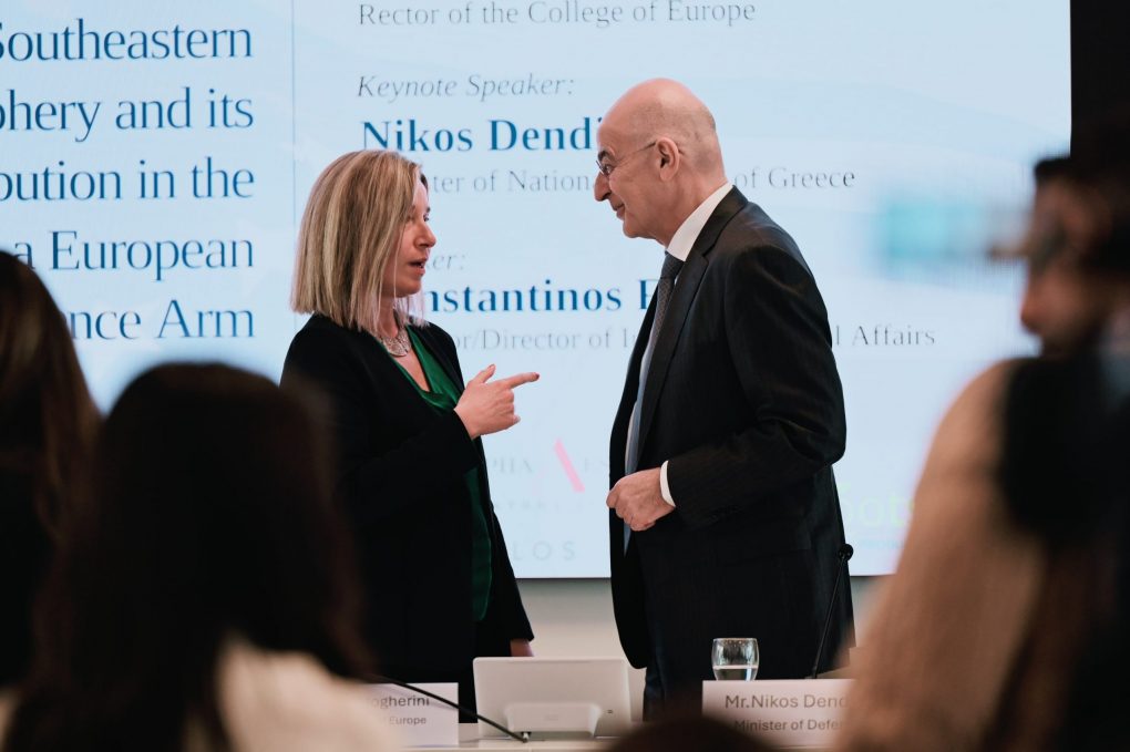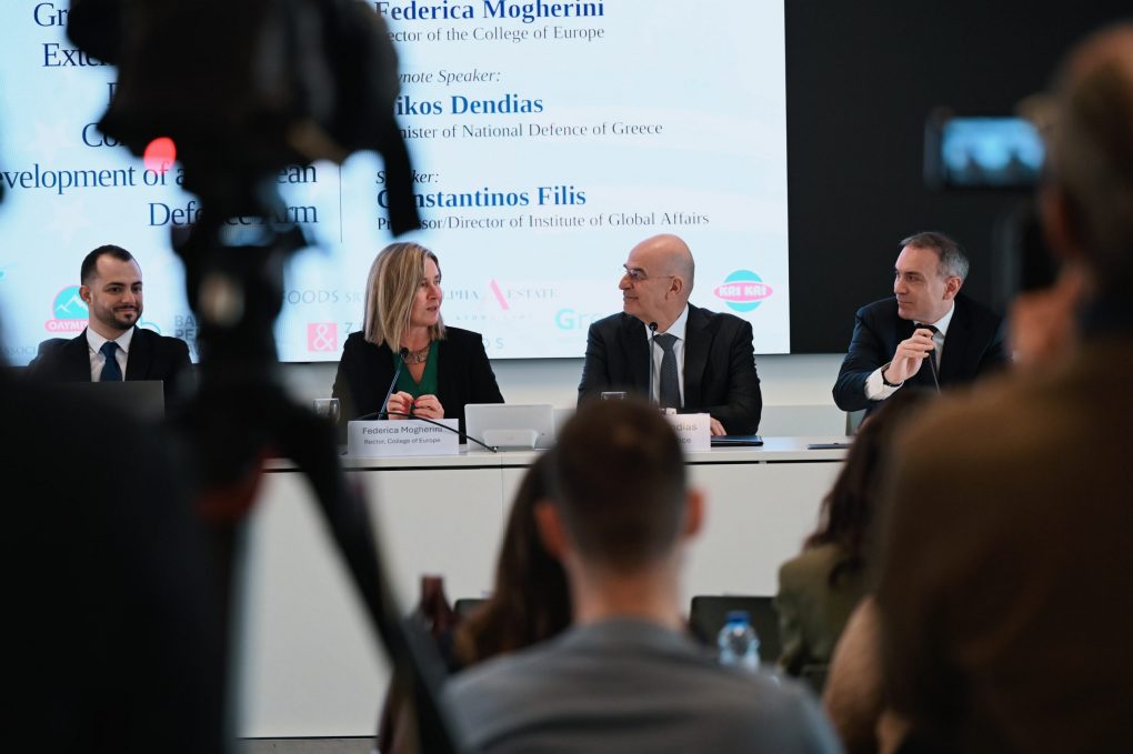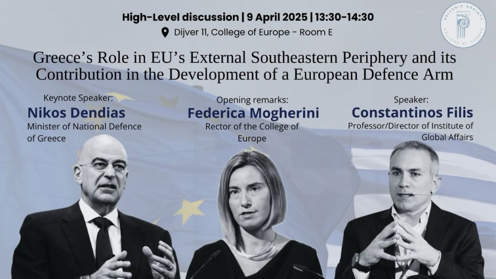 Ο Υπουργός Εθνικής Άμυνας Νίκος Δένδιας μετέβη σήμερα, Τετάρτη 9 Απριλίου 2025, στη Μπρυζ του Βελγίου όπου συμμετείχε σε δημόσια συζήτηση στο Κολλέγιο της Ευρώπης με θέμα «Ο ρόλος της Ελλάδας στα Νοτιοανατολικά σύνορα της Ε.Ε. και η συνεισφορά της στην ανάπτυξη του ευρωπαϊκού αμυντικού βραχίονα».