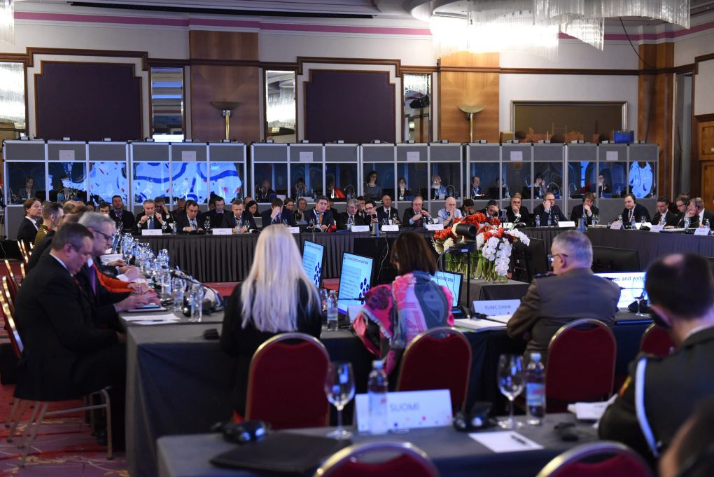 Στο περιθώριο των εργασιών της συνόδου, είχα και την ευκαιρία να έχω ουσιαστικές διμερείς συναντήσεις με τους ομολόγους μου από την Αυστρία και τη Γερμανία αλλά και μια πολύ σημαντική τετραμερή συνάντηση με Γαλλία, Ιταλία και Κύπρο. Οι συζητήσεις μας εστιάσθηκαν στο επίκαιρο ζήτημα της προσφυγικής κρίσης στα σύνορά μας και σε επιμέρους δράσεις διμερούς συνεργασίας στα επίπεδα Άμυνας και Ασφάλειας. Τόνισα επίσης την ιδιαίτερη σημασία που αποδίδουμε στην περαιτέρω ενίσχυση της συμμαχικής δραστηριότητας στο Αιγαίο και τη Μεσόγειο για την ανάσχεση των μεταναστευτικών ροών από την Τουρκία, αλλά και στην γενικά ενισχυμένη ναυτική παρουσία μας στην Ανατολική Μεσόγειο.