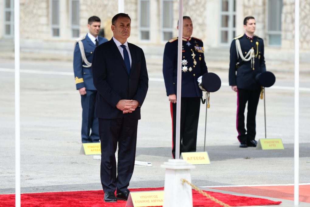 Ο Υπουργός Εθνικής Αμύνης κ. Νικόλαος Παναγιωτόπουλος παρευρέθη σήμερα, Πέμπτη 23 Απριλίου 2020, στην τελετή εορτασμού του Αγίου Γεωργίου, προστάτη του Ελληνικού Στρατού, η οποία πραγματοποιήθηκε στις εγκαταστάσεις της Σχολής Πεζικού στη Χαλκίδα.