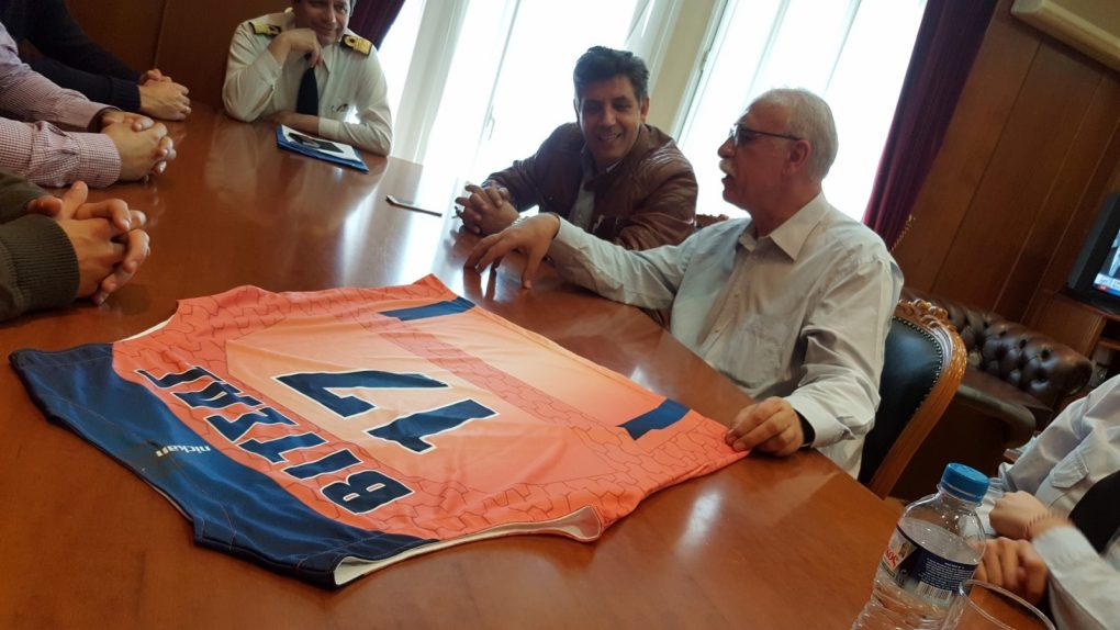 Οι παίκτες της ομάδας χάρισαν στον Υπουργό μια φανέλα με τα χρώματα του ΦΑΡΟΥ ΚΕΡΑΤΣΙΝΙΟΥ και το όνομα ΒΙΤΣΑΣ. Ο ίδιος τους δήλωσε πως την Κυριακή θα παρακολουθήσει και θα στηρίξει από κοντά τον αγώνα στο ΟΑΚΑ.