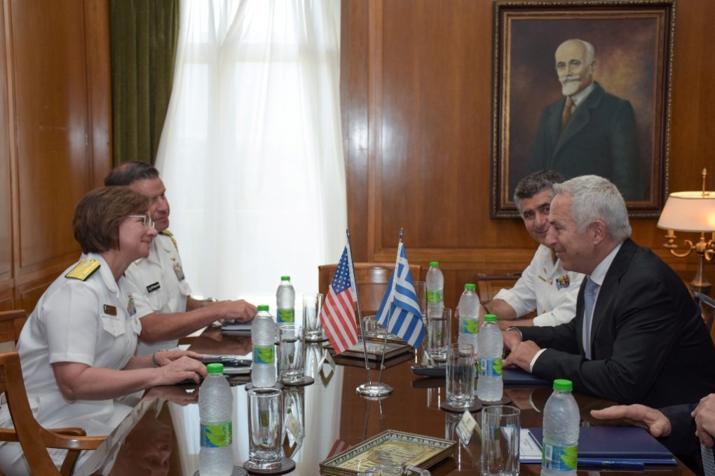 Η Vice Admiral Lisa M. Franchetti συνοδευόταν από τον Πρέσβυ των ΗΠΑ στην Αθήνα Geoffrey Pyatt, ενώ στη συνάντηση παρέστη και ο Αρχηγός ΓΕΝ.