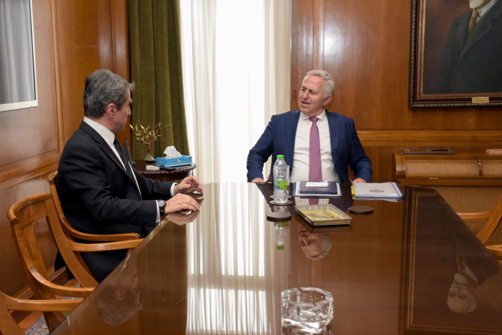 Ο Υπουργός Εθνικής Άμυνας Ευάγγελος Αποστολάκης, την Τετάρτη 20 Μαρτίου 2019, δέχθηκε στο γραφείο του τον Κοινοβουλευτικό Εκπρόσωπο και Τομεάρχη Εξωτερικών και Άμυνας της Δημοκρατικής Συμπαράταξης, Βουλευτή Ανδρέα Λοβέρδο.