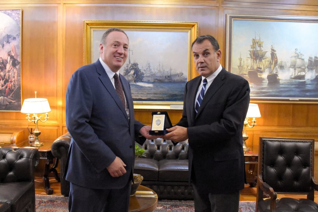 O Υπουργός Εθνικής Άμυνας κ. Νικόλαος Παναγιωτόπουλος συναντήθηκε σήμερα, με τον Πρόεδρο και Εκτελεστικό Διευθυντή του Jewish Institute for National Security οf America (JINSA) κ. Μάικλ Μακόφσκι (Μichael Makovsky), κατά την οποία συζητήθηκαν οι προκλήσεις ασφαλείας και σταθερότητας καθώς και οι τελευταίες εξελίξεις στην περιοχή της Ανατολικής Μεσογείου.