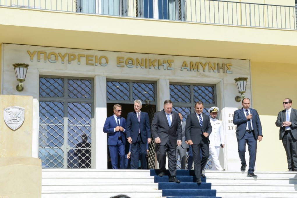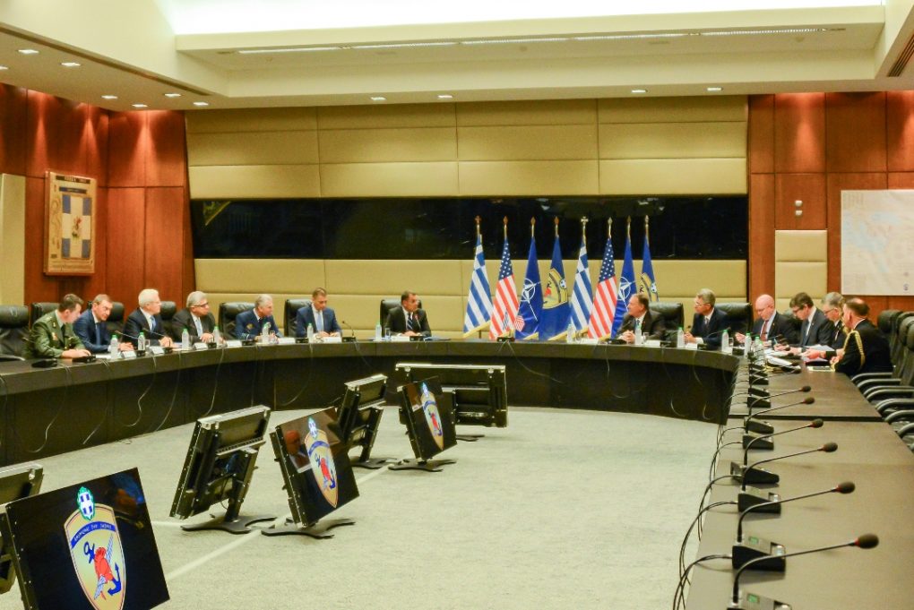 O Υπουργός Εθνικής Άμυνας κ. Νικόλαος Παναγιωτόπουλος συναντήθηκε σήμερα με τον Υπουργό Εξωτερικών των ΗΠΑ, κ. Μάικ Πομπέο (Μichael Pompeo), στο Υπουργείο Εθνικής Άμυνας, στο πλαίσιο της επίσημης επίσκεψής του στην Ελλάδα.