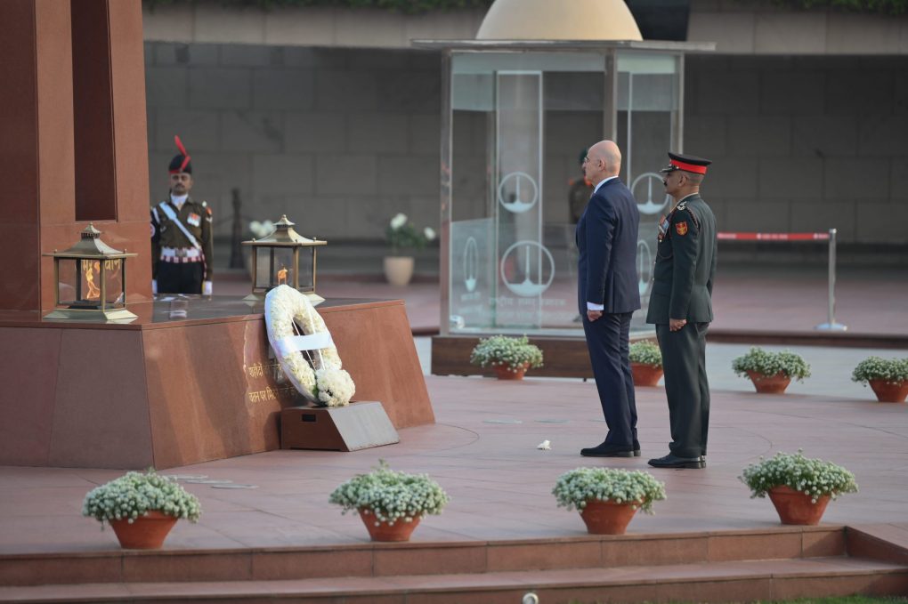 Στη συνέχεια, ο κ. Δένδιας επισκέφθηκε την Εθνική Πινακοθήκη Μοντέρνας Τέχνης και την έκθεση «Γκίκας: Ταξίδι στην Ινδία», για τον μεγάλο Έλληνα ζωγράφο Νίκο Χατζηκυριάκο – Γκίκα και μετέβη στο Εθνικό Μνημείο Πεσόντων της Ινδίας, όπου κατέθεσε στέφανο.