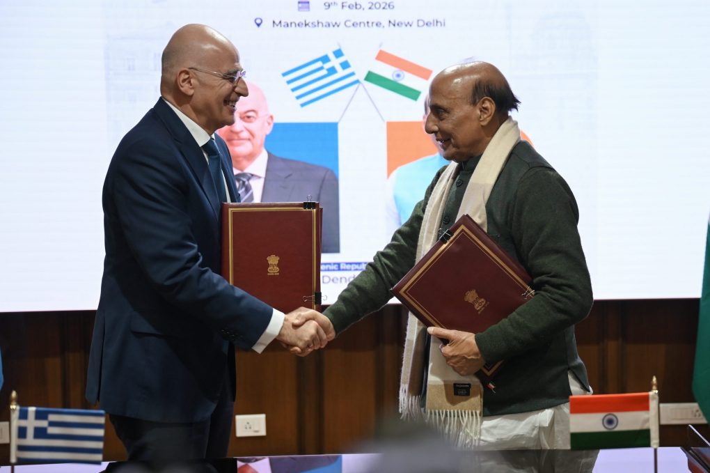 Ο Υπουργός Εθνικής Άμυνας Νίκος Δένδιας σήμερα, Δευτέρα 9 Φεβρουαρίου 2026, ολοκλήρωσε την επίσημη επίσκεψη του στην Ινδία, με την κατ’ ιδίαν συνάντηση με τον Υπουργό Άμυνας της Ινδίας Ράτζναθ Σινγκ (Rajnath Singh), στο Νέο Δελχί.