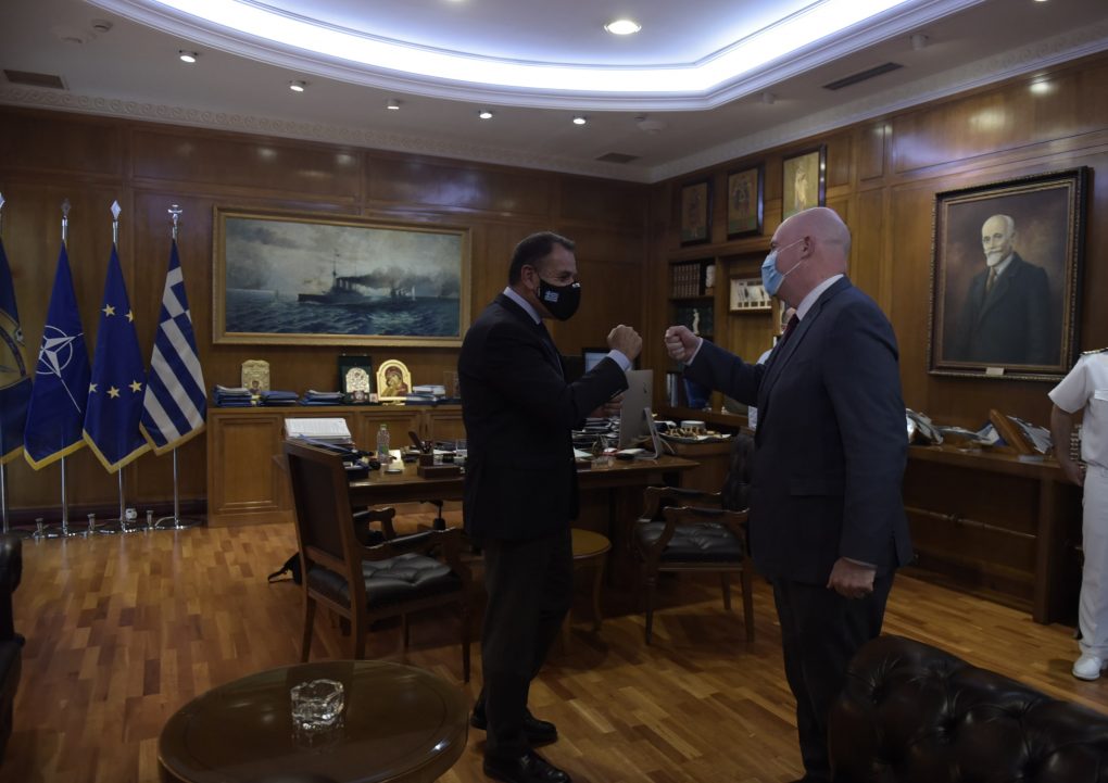 O Υπουργός Εθνικής Αμύνης κ. Νικόλαος Παναγιωτόπουλος είχε σήμερα, Τετάρτη 14 Οκτωβρίου 2020, συνάντηση με τον Αμερικανό Assistant Secretary του Υπουργείου Εξωτερικών, αρμόδιο για Πολιτικές και Στρατιωτικές υποθέσεις κ. Κλαρκ Κούπερ (Clarke Cooper), κατά την οποία συζητήθηκαν θέματα αμυντικής συνεργασίας στο πλαίσιο της στρατηγικής σχέσης και της επικαιροποιημένης Συμφωνίας Αμοιβαίας Αμυντικής Συνεργασίας (MDCA) Ελλάδος – ΗΠΑ). Παρών στη συνάντηση ήταν και ο Πρέσβης των Ηνωμένων Πολιτειών Αμερικής στην Ελλάδα κ. Τζέφρυ Πάιατ (Geoffrey Pyatt).