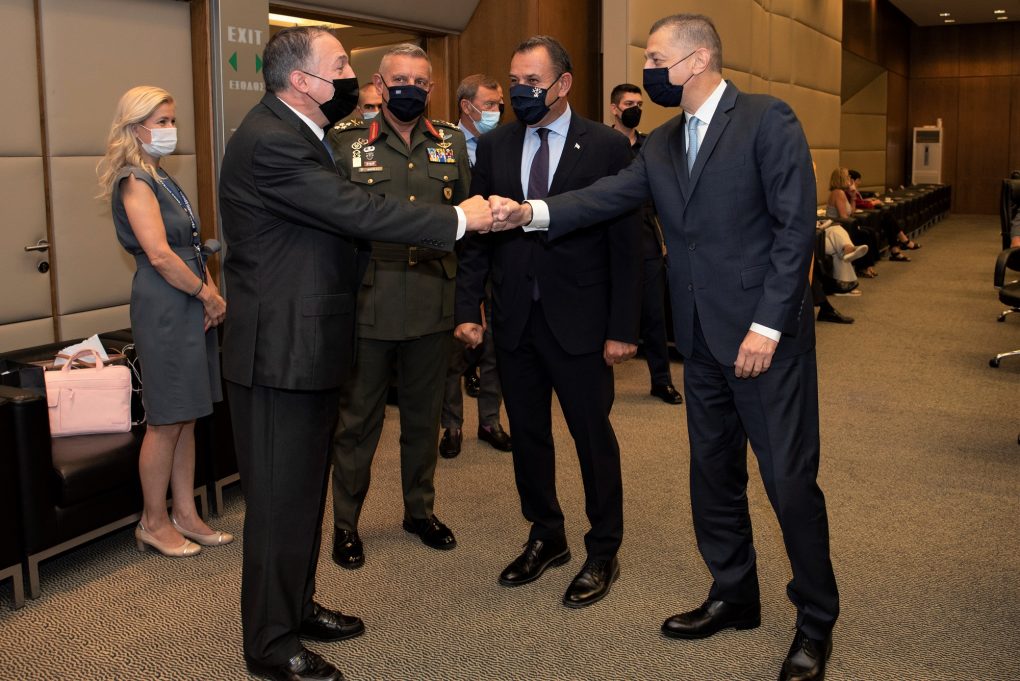 Παρόντες στη συνάντηση ήταν ο Υφυπουργός Εθνικής Αμύνης κ. Αλκιβιάδης Στεφανής, ο Αρχηγός ΓΕΕΘΑ Στρατηγός Κωνσταντίνος Φλώρος και οι Αρχηγοί ΓΕΑ Αντιπτέραρχος (Ι) Γεώργιος Μπλιούμης, ΓΕΣ Αντιστράτηγος Χαράλαμπος Λαλούσης, ΓΕΝ Αντιναύαρχος Στυλιανός Πετράκης ΠΝ.
