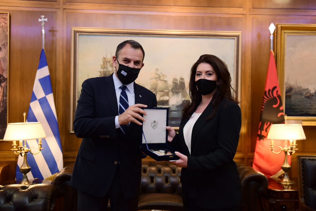 O Υπουργός Εθνικής Αμύνης κ. Νικόλαος Παναγιωτόπουλος είχε σήμερα, Τετάρτη 2 Ιουνίου 2021, εθιμοτυπική συνάντηση, με την Πρέσβη της Αλβανίας κ. Λουέλα Χαϊταράγκα (Luela Hajdaraga), με την οποία συζήτησαν θέματα διμερούς αμυντικής συνεργασίας, καθώς επίσης τις πρόσφατες εξελίξεις στην ευρύτερη περιοχή.