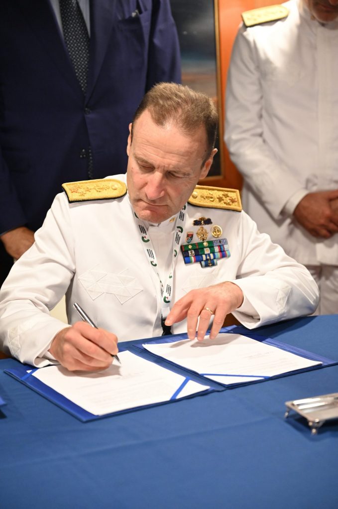 Παρουσία των δύο Υπουργών, υπογράφηκε από τον Γενικό Διευθυντή Αμυντικών Εξοπλισμών και Επενδύσεων (ΓΔΑΕΕ) Υποστράτηγο Ιωάννη Μπούρα και τον Ιταλό ομόλογό του Διευθυντή Εθνικών Εξοπλισμών της Ιταλίας Αντιναύαρχο Ottaviani Giancinto, Μνημόνιο Συνεργασίας για τη Ναυτική Συνεργασία Ελλάδας – Ιταλίας και Δήλωση Προθέσεων για την απόκτηση 2+2 ιταλικών φρεγατών τύπου FREMM, κλάσης Bergamini.