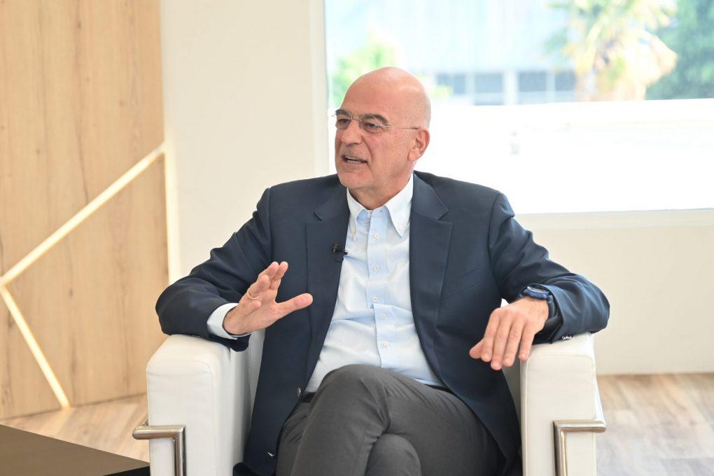 Ο Υπουργός Εθνικής Άμυνας, Νίκος Δένδιας, παραχώρησε σήμερα, Παρασκευή 26 Απριλίου 2024, συνέντευξη στο studio του Οικονομικού Ταχυδρόμου (ot.gr) στη ΔΕΘ και στους δημοσιογράφους Αλεξάνδρα Φωτάκη και Νίκο Φιλιππίδη, στο πλαίσιο της Έκθεσης για τον Ψηφιακό Μετασχηματισμό, την Καινοτομία και την Τεχνολογία Beyond 2024, που πραγματοποιείται στη Θεσσαλονίκη.