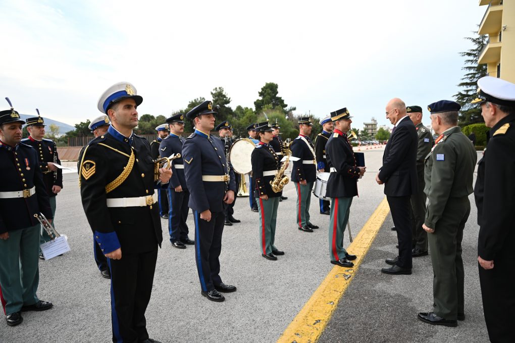 Τον Υπουργό συνόδευαν ο Αρχηγός ΓΕΕΘΑ Στρατηγός Κωνσταντίνος Φλώρος, ο Αρχηγός ΓΕΑ Αντιπτέραρχος (Ι) Θεμιστοκλής Μπουρολιάς, ο Αρχηγός ΓΕΣ Αντιστράτηγος Άγγελος Χουδελούδης και ο Αρχηγός ΓΕΝ Αντιναύαρχος Ιωάννης Δρυμούσης ΠΝ.