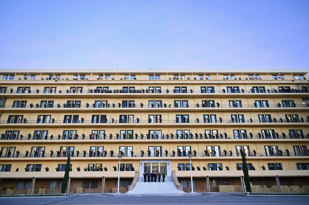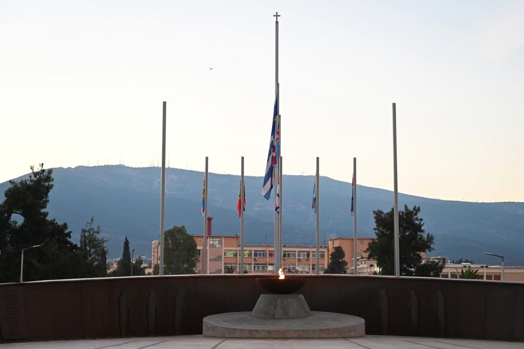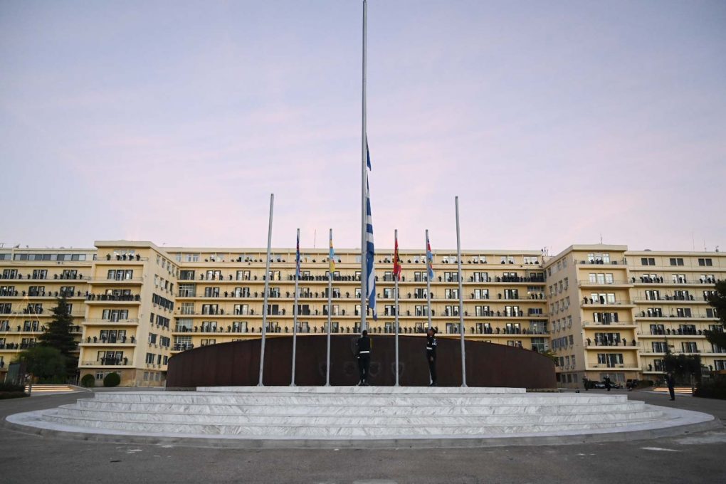 Η τελετή έγινε κατά την έπαρση της σημαίας σε μεσίστια θέση, λόγω του τριήμερου πένθους των Ενόπλων Δυνάμεων.