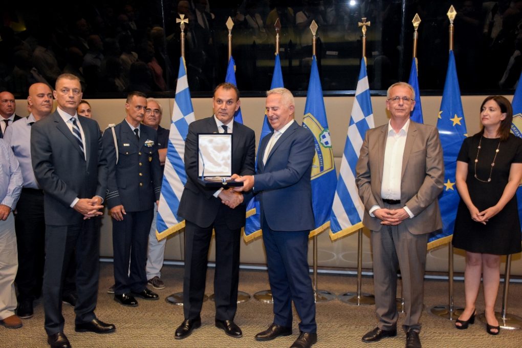 «Κύριε Υπουργέ, κύριε Υφυπουργέ, καλωσορίσατε – και από τη δική μου πλευρά – στο Υπουργείο. Έχω την τιμή και την ευχαρίστηση, όμως, μέσα από την καρδιά μου ότι συνεργάστηκα και με τον αποχωρούντα Υπουργό, τον Ναύαρχο Αποστολάκη, τον Υπουργό Αποστολάκη, και ως επικεφαλής του Γενικού Επιτελείου Εθνικής Άμυνας και μετά ως Υπουργό και με τον κ. Στεφανή, ως Αρχηγό του Γενικού Επιτελείου Στρατού. Είναι, λοιπόν, τιμή μου αυτό και κυρίως η άψογη και εξαιρετική συνεργασία η οποία υπήρξε.