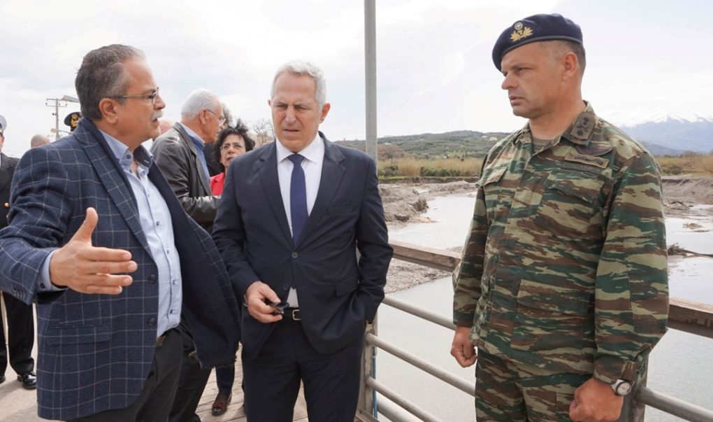 Στο περιθώριο της επίσκεψης του στην Κρήτη ο Υπουργός Εθνικής Άμυνας μετέβη στις περιοχές που έχουν τοποθετηθεί στρατιωτικές γέφυρες τ. Bailey, λόγω των καταστροφών που προκλήθηκαν από έντονα καιρικά φαινόμενα, στον Πλατανιά και το Πατελάρι. Επίσης επισκέφθηκε και την περιοχή του Αλικιανού όπου προγραμματίζεται η τοποθέτηση στρατιωτικής γέφυρας τ. Bailey στον ποταμό Κερίτη.